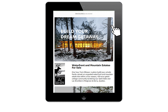 Lac Saint-Six partnered with Coyle Media Group to create a customized marketing program to effectively reach their target audience. We created and produced a corporate video that enable Lac Saint Six to demonstrate the allure of their 450 acre cottage community bordering Lac Saint-Sixte and Lac BronRob in Quebec